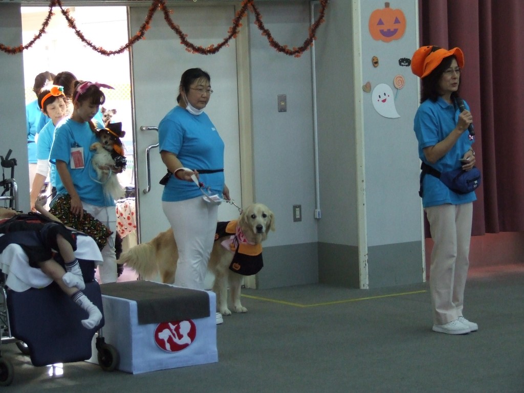 ボランティアさんもワンちゃん達も、みんなハロウィンの衣装です。