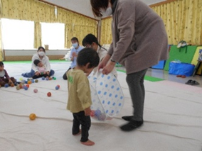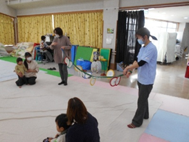 最初は何が始まるの?と少し緊張していたお友達も気づけば自分から身体を動かし、自分のできる事、好きな事の表現が始まりました。