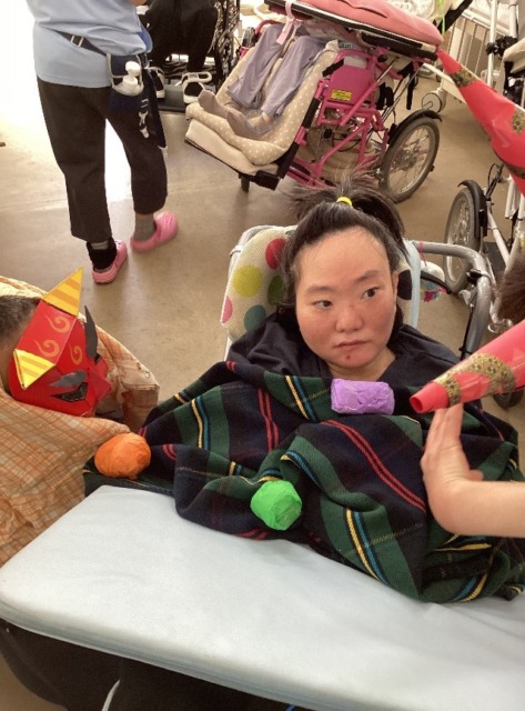 突然のリアルな鬼に不思議そうな表情を浮かべる利用者様も…。
