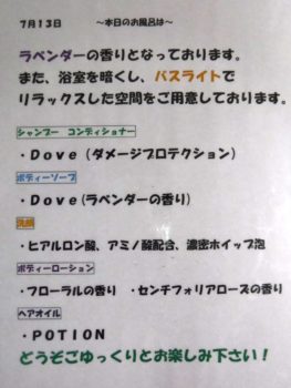 入浴剤に対してアレルギーのある方でも楽しめるように、今月は光の入浴を設定しました。手作りの遮光ボードで光を遮断して通常よりも少し暗い空間を作ります